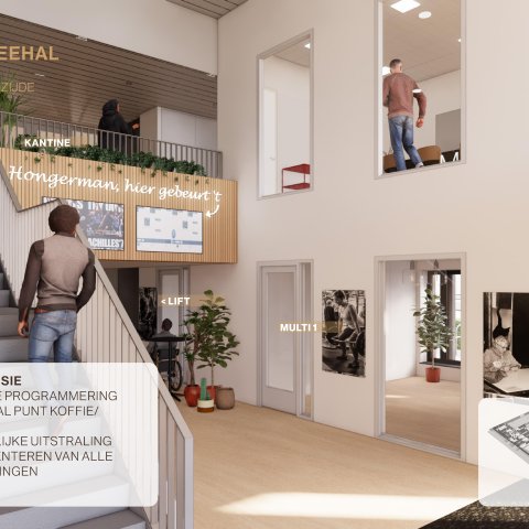 It is known what the Hongerman will look like inside after the renovation! The interior design comes from a careful participation process with users and local residents. The design by interior designer LA-architects gives substance to the appearance and experience of the building for all users.